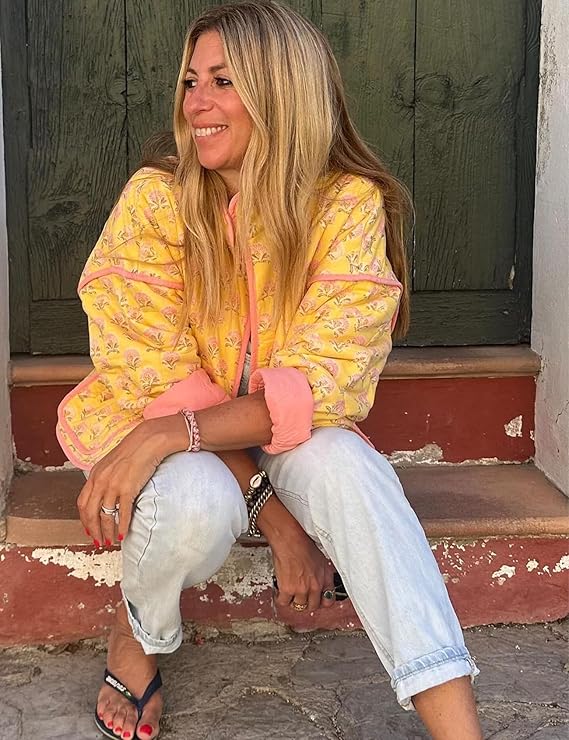 Patchwork jacket with a floral pattern and stand-up collar from BoiiLife. Version with shoulder slits. Loose and relaxed. Suitable for streetwear. The front pocket provides convenience, and the sleeves are loose enough to be rolled up as desired. It's the perfect combination of comfort and fashion, ideal for cool weather and worth adding to your autumn/winter wardrobe!